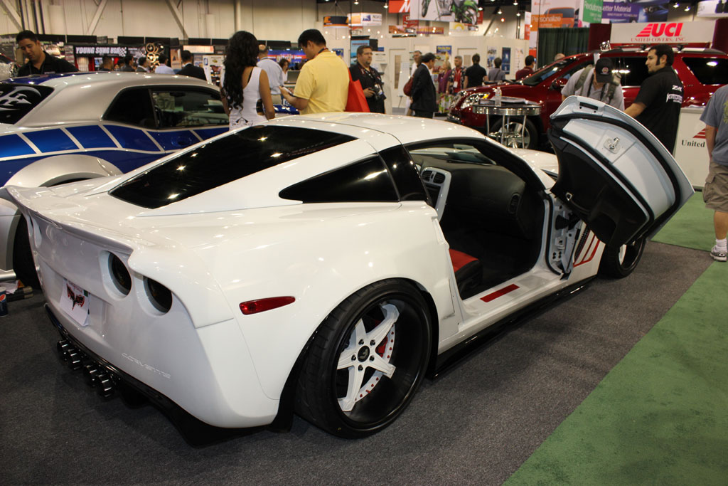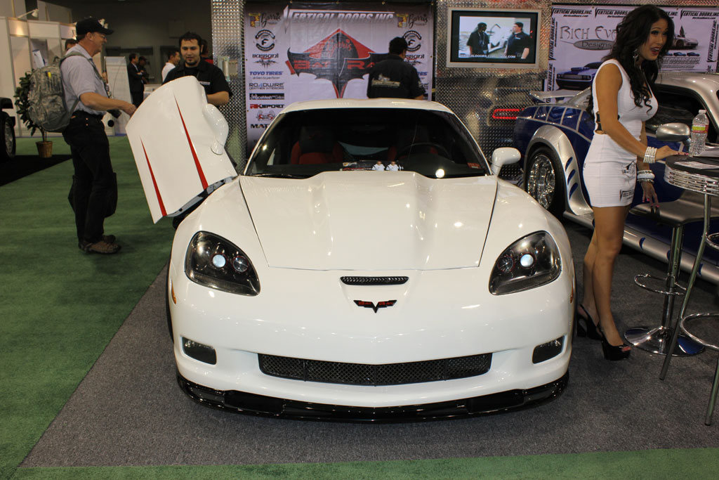 The design of the car came about quite quickly for Vertical Doors who told us that the Corvette was completely torn down in the shop just 15 days priorsto the start of SEMA. In fact when we viewed the Corvette on opening day at SEMA, we learned that the Corvette was still awaiting a couple of items to be installed that evening after the show.