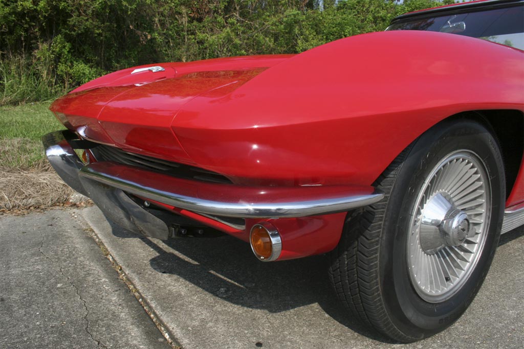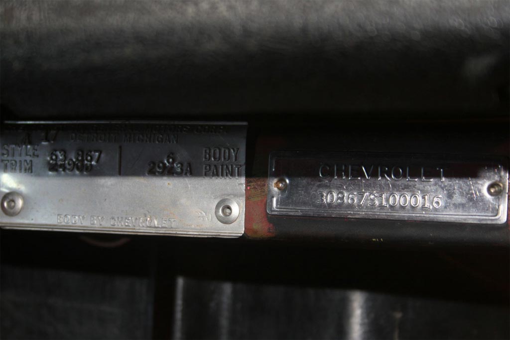 1963 Corvette VIN 16 still sports its original 327ci/360hp fuelie engine and 4-speed transmission. The exterior wears Riverside Red and is complemented by the matching red vinyl interior. The odometer reads 106,000 miles and the car has been with its current owner since 2001.