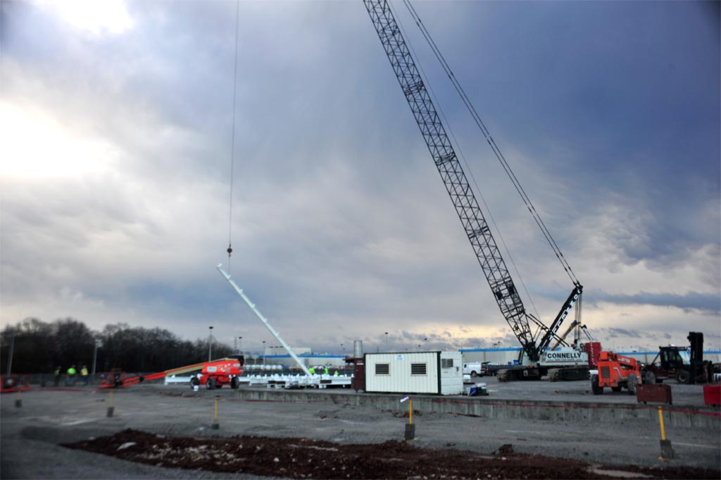 That first beam, which was 55 feet long and weighed three tons, is part of the northeast corner of the new paint shop, which will be 450,000 square feet – half the size of the current facility.