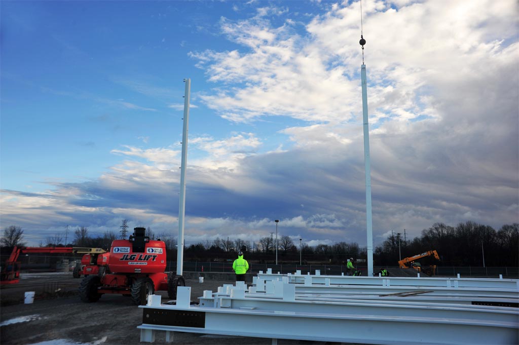 Construction crews will put up an average of 50 pieces of steel each day to stay on schedule and should have the building enclosed by this May, allowing the new equipment to be installed in time for the first car to be painted in April 2017.