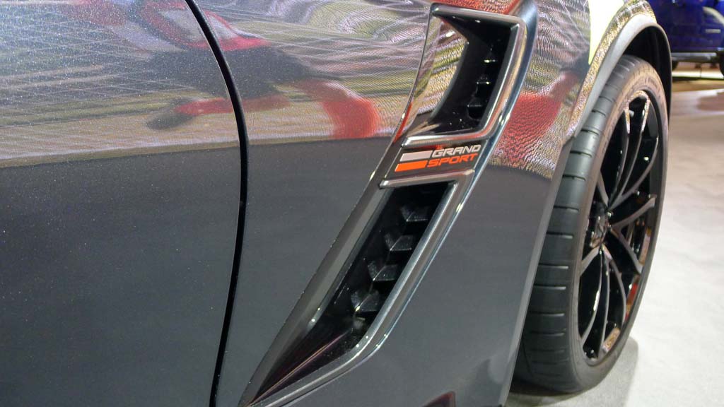A Ceramic Matrix Gray ZR1 with red interior and brake calipers sat on a turntable over in the far corner close to an exit door and adjacent to the Ford display. While the car drew crowds last year its draw this year seemed less. We were there very early in the day and we did see various members of the media photographing it, but it’s clear that autonomous cars, electrification, and cross over SUV’s claim everyone’s attention these days. And, no, there was no talk of the mid-engine C8 making a surprise appearance in Detroit. Nearby a Watkins Glen Gray Grand Sport Coupe with black interior and yellow calipers sat next to a Colorado, a Tahoe, and a new Silverado.