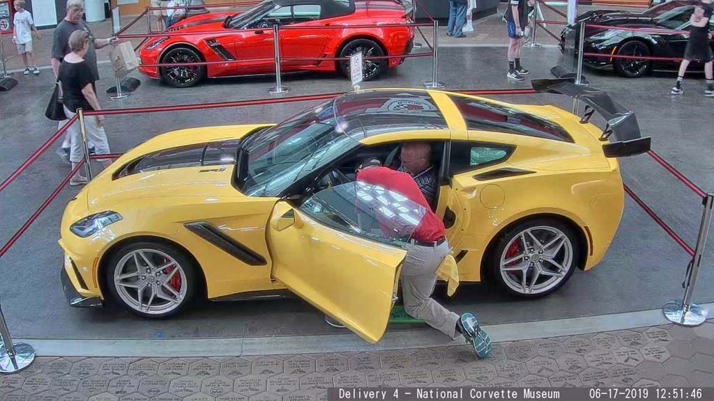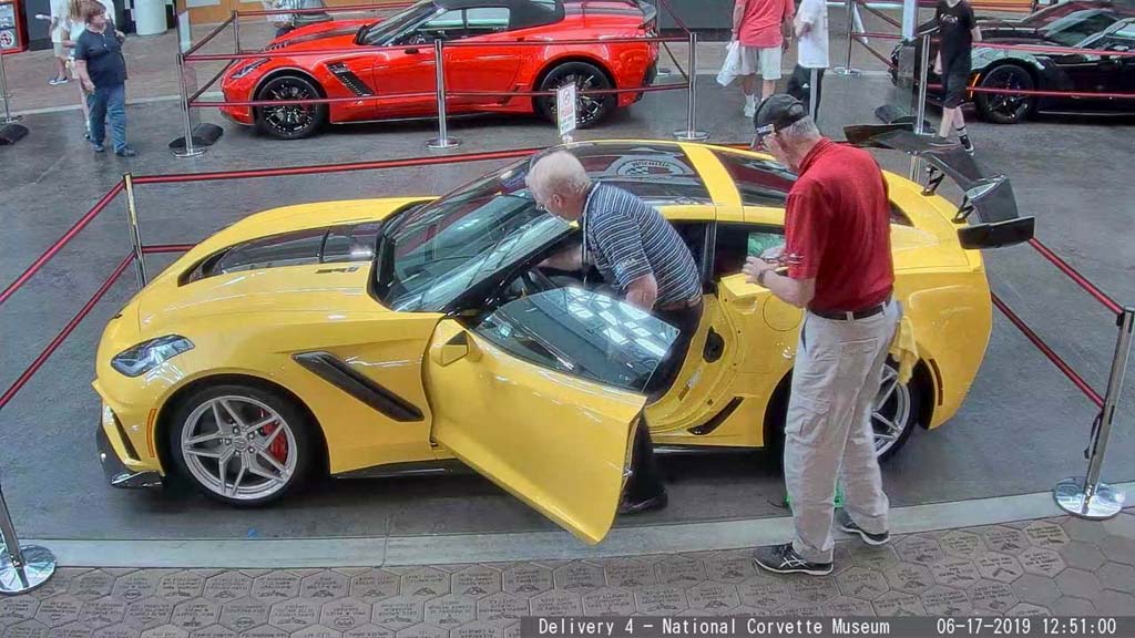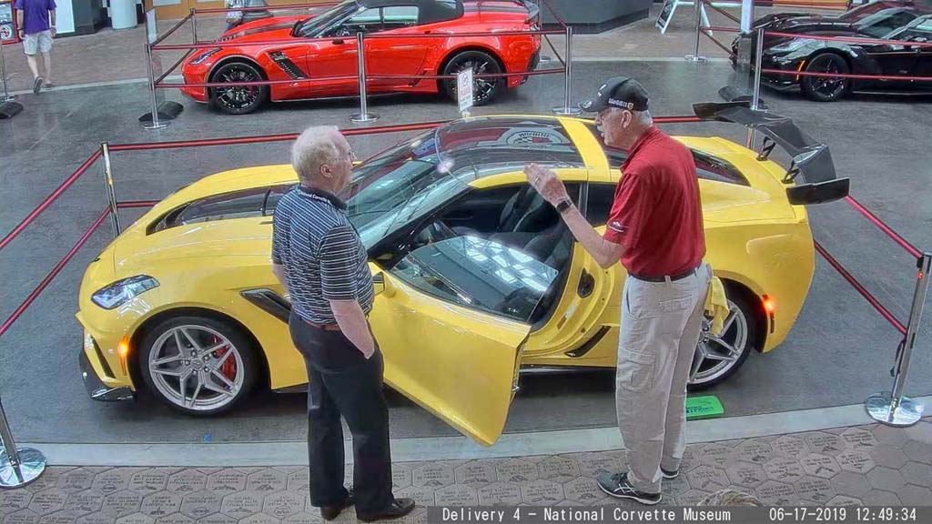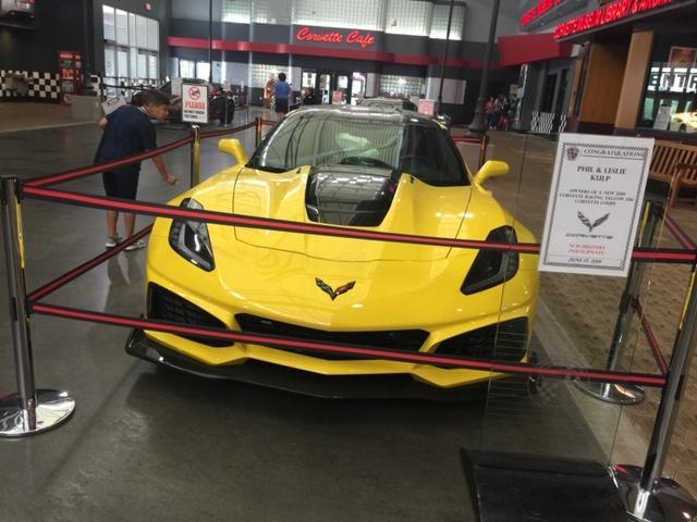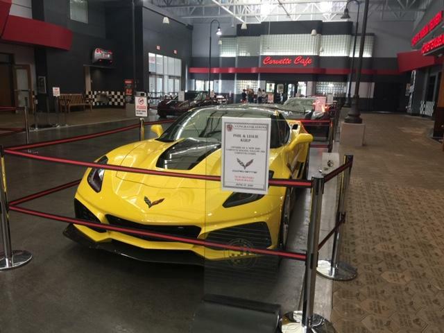 Phil K. of Brentwood, Tennessee had touched base with me a while back as he had called many of the top Corvette dealers seeking a very hard to come by allocation for a 2019 ZR1. I gave him a call when his number came up and he placed his order for Corvette Museum Delivery. ZR1! # 2,527 is all theirs now as this past Monday Phil and Leslie had the red carpet rolled out for their delivery at the Museum in Bowling Green, KY. Equipment list for his Racing Yellow ZR1: Auto transmission, Jet Black Competition seats, Red Calipers, ZTK Track Performance Pkg, Yellow stitching and 3ZR pkg…and of course R8C.