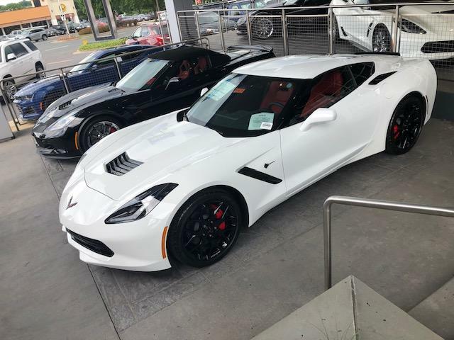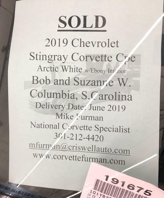 ~Bob and Suzanne W. Of Columbia, South Carolina were referred to me and made an appt. last week. They flew up to Criswell last Saturday in search of their very first Corvette. They were a gasp at the size of my 120+ Corvette inventory. They had a few specifics in mind and they landed on an Arctic White 2019 Stingray CPE with Adrenaline Red seats. We did the paperwork/payment process via Fed Ex and This weekend Plycar trucking picked up their new Corvette to bring to their home in South Carolina. Equipment list: Auto transmission, CF badge pkg, Black Motorsports Aluminum wheels, Red calipers, 1LT Pkg, performance exhaust and much more. So here’s a nod to the 1953 Corvette, because all 300 of the first year Corvette were White with Red interior. Words from Bob W. off of his Dealerrater review…