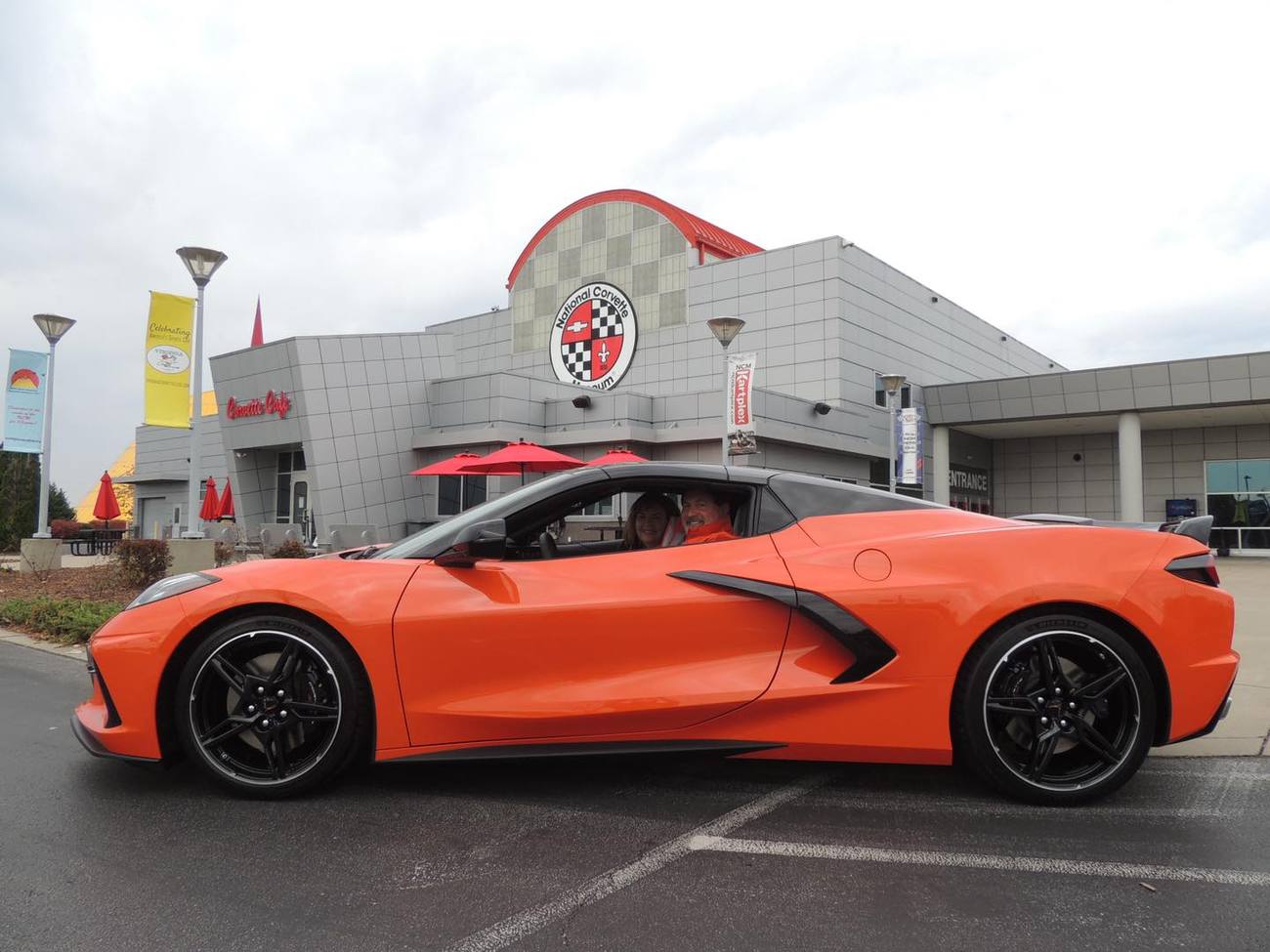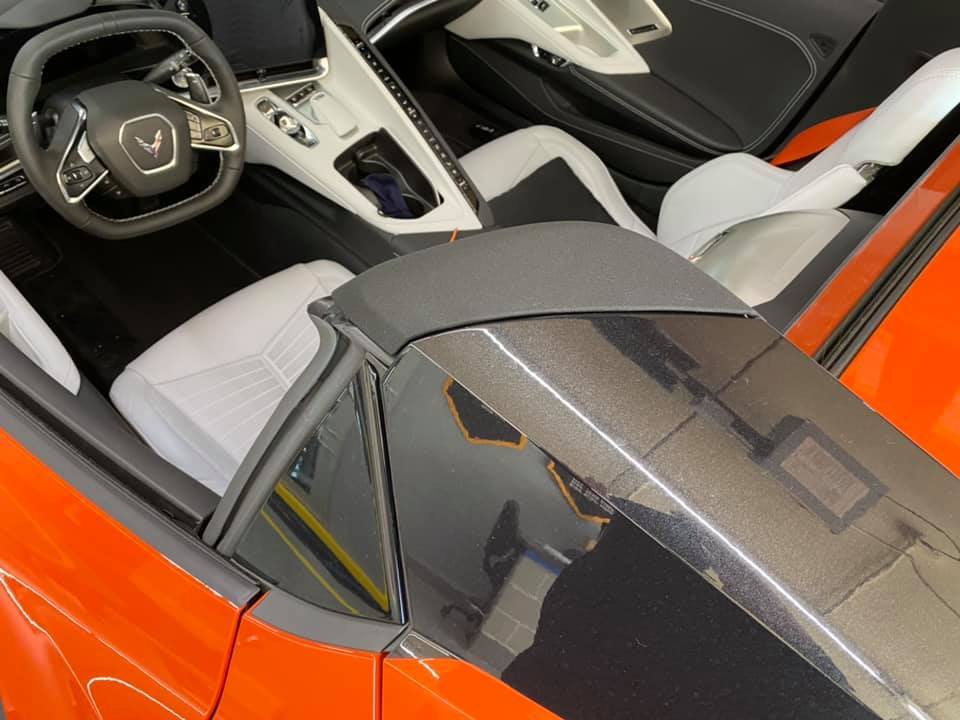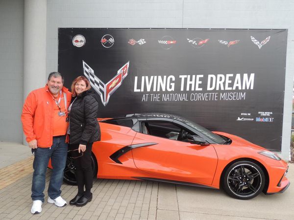 ~ Barrett and Terri T. of Stephenson, Virginia have bought Corvettes from me before and they chose to pick up their new Sebring Orange 2020 at the Corvette Museum in BowlingGreen, KY. This past Saturday they completed their mid-engine dream. Equipment list: 2LT pkg, Z51, Sky cool gray interior, GT2 buckets, CF nacelles and roof, front lift, magnetic ride, cf painted wheels, cf painted mirrors and spoiler, and Orange seat belts. Their new Corvette is a stunner!