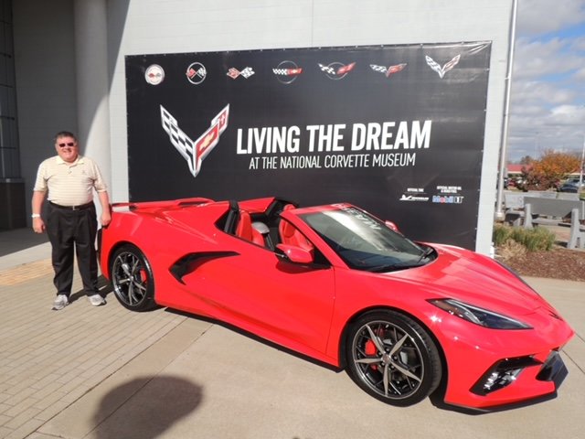 ~JJ S. of Winchester, Virginia was referred to me originally by a long-time Corvette customer of mine, and last week he took delivery of his 4th Corvette through the R8C Museum delivery program. JJ ordered a Torch Red 2020 Corvette Z51 Convt With Adrenaline Red interior and Red seat belts. Equipment list: 2LT pkg, magnetic ride, bright red calipers, and spectra gray wheels. The weather was perfect as was the Corvette JJ rode off in.