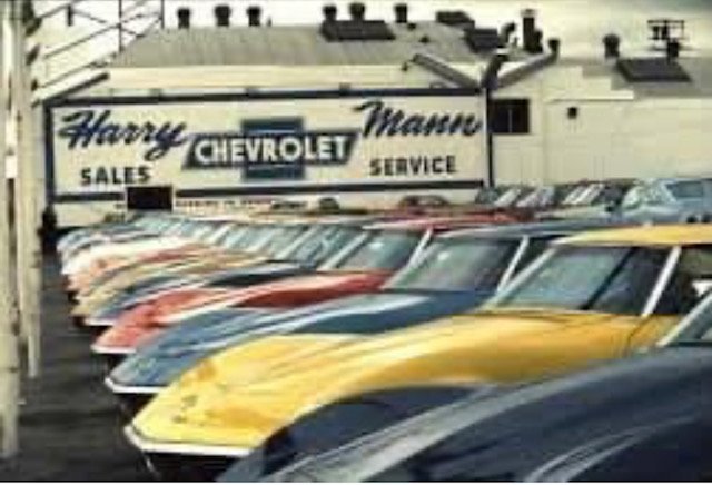 My favorite pic is the one of the Corvettes lined up on the front row at Harry Mann Chevrolet. That is impressive! But I can tell you of another dealer that was even more impressive. In 1971, I bought a Fathom Green ’69 Corvette L71 427/435 convertible from Colony Dodge in Winston-Salem, North Carolina. The impressive part there was that even though they sold Dodges, they knew how strong the Corvette market was. And so their entire front line was ALWAYS nothing but used Corvettes. I traveled 75 miles to see their inventory just on word of mouth.