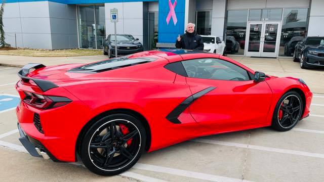 ~Richard M. of Edmond, Oklahoma has ordered several Corvettes from me over the years and this past week he took delivery via courtesy delivery at a near to him Chevrolet dealer in Oklahoma City, OK. Richard ordered a Torch Red Z51 coupe with red/black two tone interior. A note from Richard on the survey…
