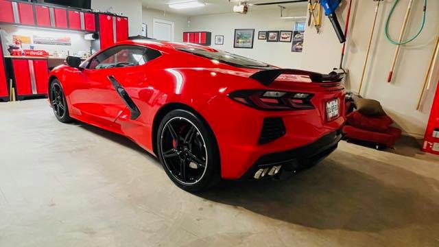 ~Willie C. of Bowie, Maryland was scheduled to do museum delivery this week but decided to ship the Corvette home and then our service department added the high wing spoiler. Willie factory ordered a Red Mist 2021 Corvette Z51 convertible with all the goodies. Equipment list: 3LT pkg, two tone natural interior, CF painted Nacelles/top, front lift, CF interior trim, magnetic ride, edge red calipers, cf painted mirrors, and tan seat belts. A super nice guy is awfully glad to have his super nice Corvette! Yesterday I gave him a tutorial on all things C8.