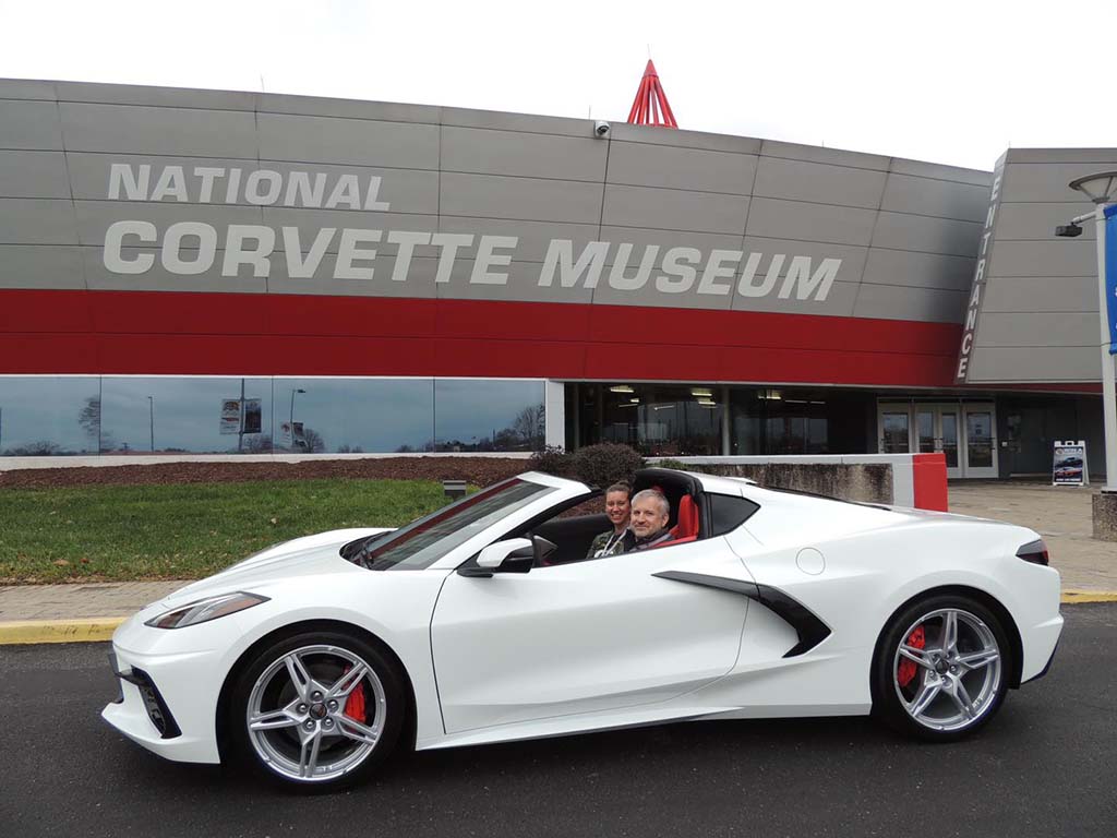 ~Josef W. of Highlands Ranch, Colorado placed his factory order from me for an Arctic White 2021 Corvette coupe with adrenaline red interior. Today he took delivery at the National Corvette Museum in BG, KY. Equipment list: chrome badges, front lift, bright red calipers, performance exhaust, torch red seat belts and 2LT pkg.
