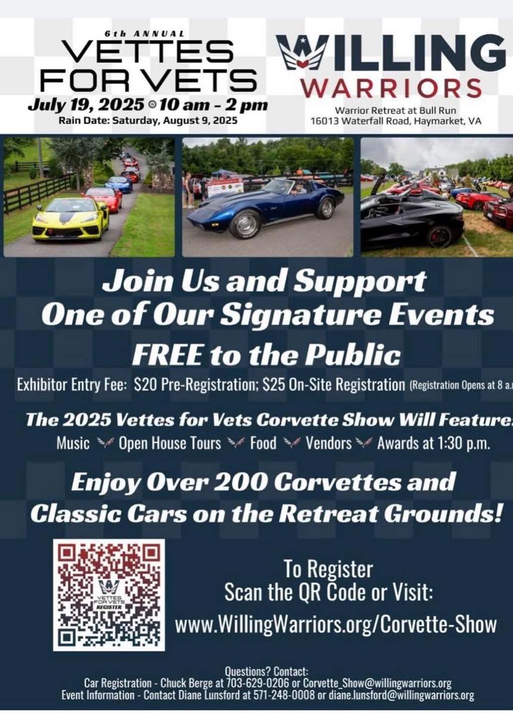 ~July 19th, next Saturday I will be attending for the 5th year in a row The” Vette’s for Vets “Corvette Show in Haymarket, Virginia. The venue is set on a beautiful rolling country side and is for the best of charities. See you there!