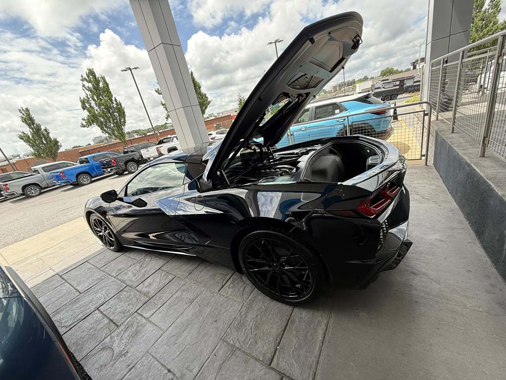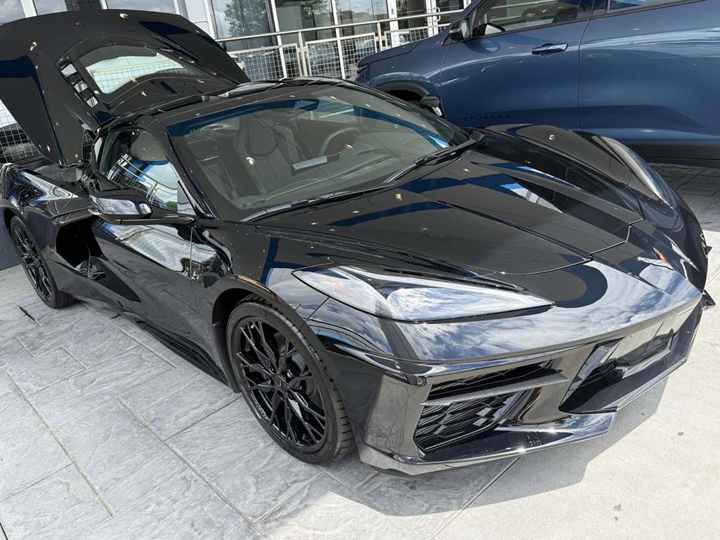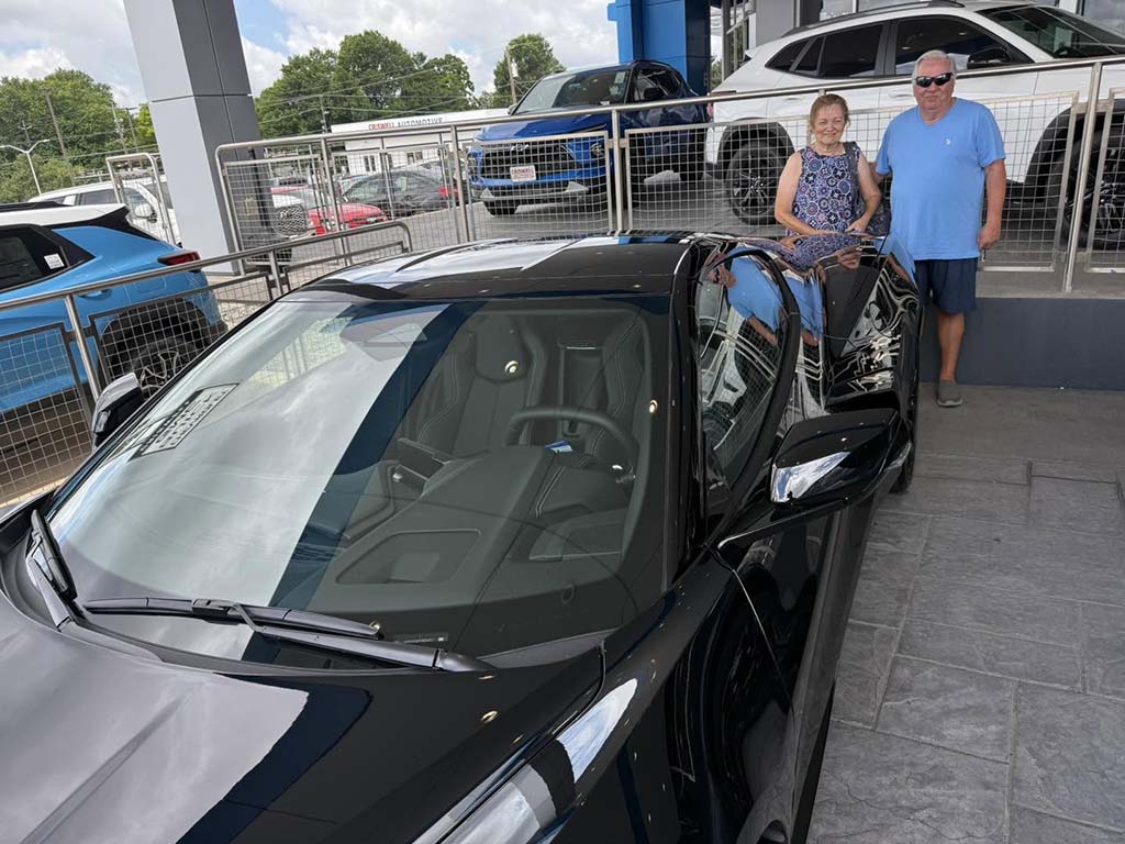 ~Bill and Barb M. of Hanover, Pennsylvania were literally waiting for me to return from vacation as they showed up in my office at 7:45am this morning, my first moment back as they wanted to buy their third new Corvette from me. I sold them a brand new Inferno Orange 2012 Grand Sport, a 2024 Yellow Corvette and today they took delivery of a new Black 2025 Corvette Coupe. They traded in their Black 2024 Silverado Trail Boss. Equipment: 1LT, black exhaust tips, performance exhaust, 20 spoke gloss black forged wheels.