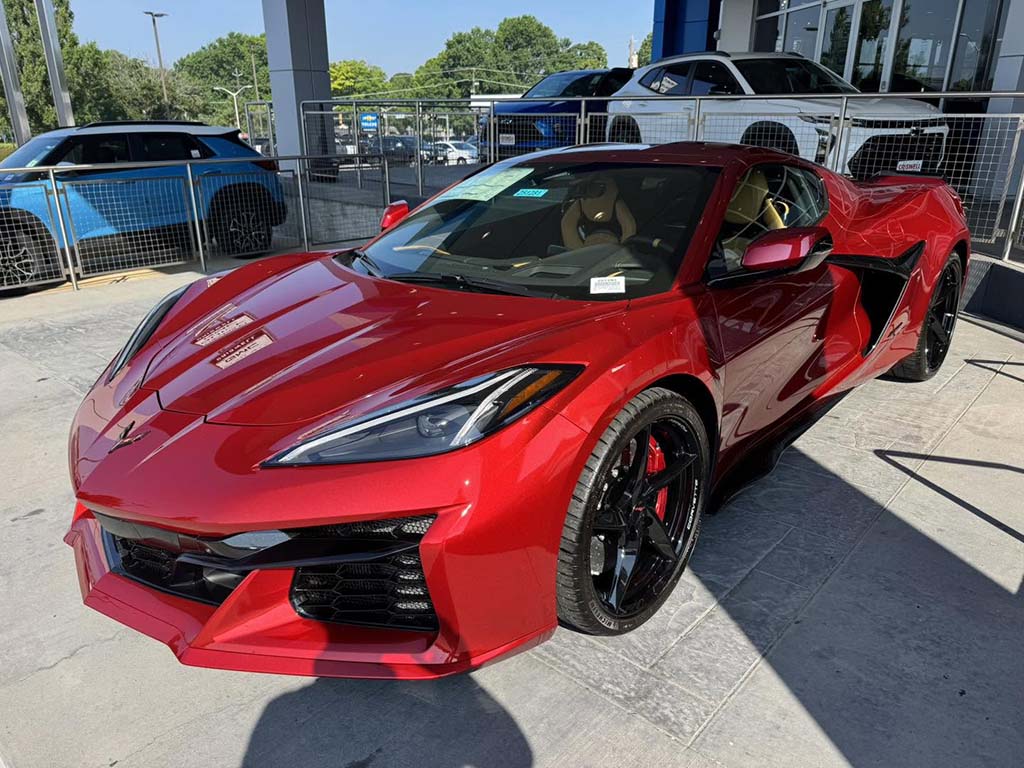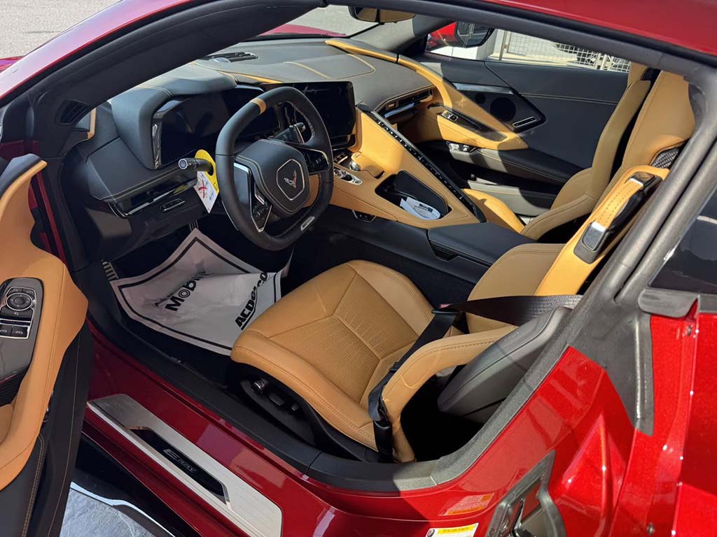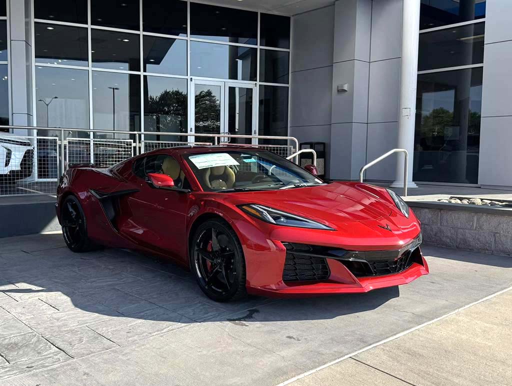 ~John L. of Hacienda Heights, California factory ordered his new Red Mist metallic Tintcoat 2025 Corvette Eray Coupe with Natural interior. We completed the paperwork via Fed ex and this past Saturday it was loaded by Plycar Trucking for the enclosed trailer 3,000 mile trip to John’s California home. Equipment: 2LZ, GT2 buckets, stealth interior trim, red engine cover, front lift, CF interior trim, edge red calipers, black exhaust tips, gloss black wheels, scrape armor grille, ZER performance tires and more.