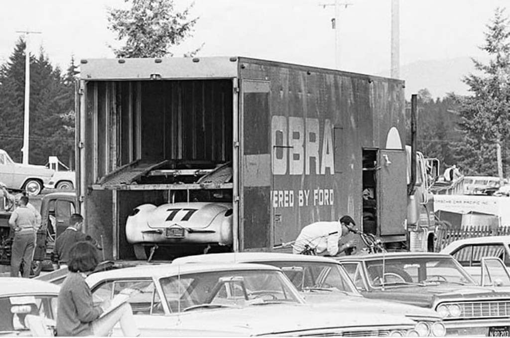 Interesting view of the solid axle Corvette inside the Ford Cobra truck trailer!